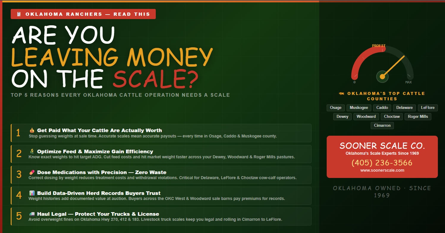 "In any other business, if you didn't know exactly how much inventory you were selling, you’d be bankrupt in a year. Yet, thousands of ranchers still sell 'by the eye.' If your visual estimate is off by just 5%, you aren't just losing weight—you're leaving thousands of dollars on the trailer." Option 1: The "Profitability" Angle Target Audience: The business-minded rancher focused on the bottom line. The Topic: Why Guessing Your Herd Weight is Costing You $100 Per Head. The Hook: "In any other business, if you didn't know exactly how much inventory you were selling, you’d be bankrupt in a year. Yet, thousands of ranchers still sell 'by the eye.' If your visual estimate is off by just 5%, you aren't just losing weight—you're leaving thousands of dollars on the trailer." Key Value Points: Optimizing sale dates (hitting the "sweet spot" weight). Reducing "shrink" during transport. Accurate dosing of expensive medications (preventing under-dosing or wasting product). Option 2: The "Precision Ag" Angle Target Audience: The modern producer looking to optimize genetics and feed. The Topic: Data Over Intuition: Using Average Daily Gain (ADG) to Cull the Bottom 10%. The Hook: "The most expensive animal on your property isn't the prize bull—it’s the 'free loader' cow that eats like a champion but gains like a snail. Without a scale, you’re feeding a bottom-performer that’s dragging your entire operation’s ROI into the dirt." Key Value Points: Identifying high-performing genetics. Adjusting feed rations based on real-time performance. Early detection of illness (weight loss is the first sign of a sick animal). Option 3: The "Peace of Mind" Angle Target Audience: The family-run operation focused on long-term sustainability. The Topic: The Truth on the Scale: How Weighing Simplifies Your Toughest Ranch Decisions. The Hook: "Ranching is a gamble against the weather, the market, and the clock. A livestock scale is the only tool that stops the guessing game. It’s the difference between 'thinking' your weaning weights are up and 'knowing' your hard work is actually paying off." Key Value Points: Stress-free weaning. Better bargaining power with buyers (having the data to back your price). The psychological win of seeing measurable progress year-over-year.
